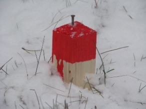 Under selve bygningsafsætningen markeres typisk enten husets hjørner eller nogle sikringspæle som entreprenøren kan trække snore